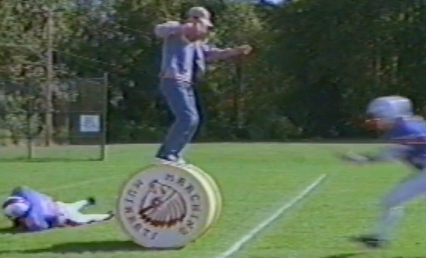 Not only did I need to carry a football, stay on the drum on an uneven grassy surface, but I’d also have to avoid being distracted by athlete-actors in full football gear lunging at my progress, and in one instance, diving directly at my feet while running on the drum.